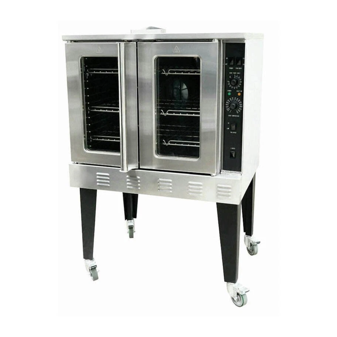 Its full-size oven cavity includes 4 racks and 13 rack positions, giving operators the flexibility to cook multiple dishes at once with ease. The porcelain-coated interior ensures excellent heat retention and simplifies cleanup, while the stainless steel front, galvanized sides, and glazed dual-pane glass doors enhance durability and visibility. A dual-speed fan motor helps optimize airflow, ensuring fast and even convection cooking. Additional features like a 60-minute timer, interior lighting, and automatic ignition system make operation smooth and intuitive.